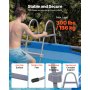 Veilig en stabiel: Deze veiligheidsladder voor bovengrondse zwembaden is voorzien van antislip treden met textuur, een verstevigde dwarsbalk en antislip rubberen voetjes voor een veilige grip bij het in- en uitstappen. Hij kan tot 136 kg dragen voor betrouwbaar gebruik.
