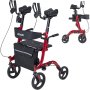 VEVOR Opvouwbare Rollator met Zitje, Lichtgewicht Looprek met 4 PVC-banden, Loophulp tot 136 kg met Rugleuning, Tas, Stokhouder, In hoogte verstelbaar Loophulp met Vergrendelfunctie voor Senioren, Rood
