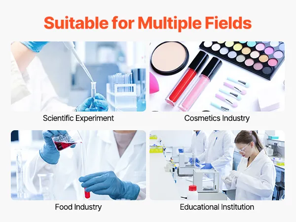 Onze centrifuge is geschikt voor talloze experimentele opstellingen en biedt een breed scala aan toepassingen in wetenschappelijk onderzoek, cosmeticaontwikkeling, onderwijslaboratoria en vakgebieden zoals biologie, geneeskunde, scheikunde en milieuwetenschappen.