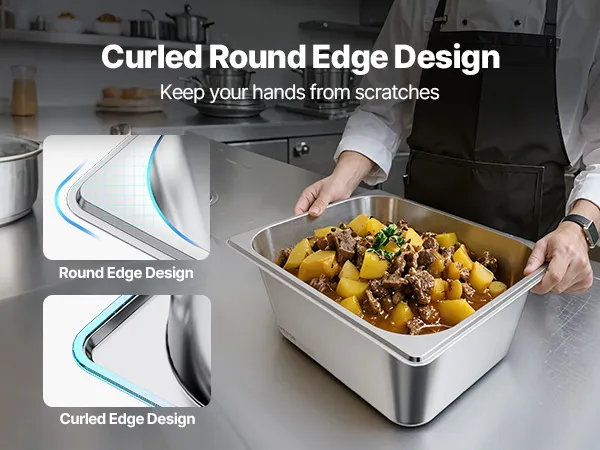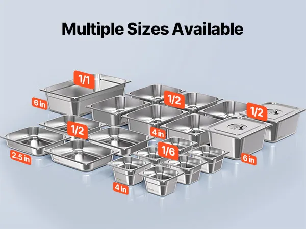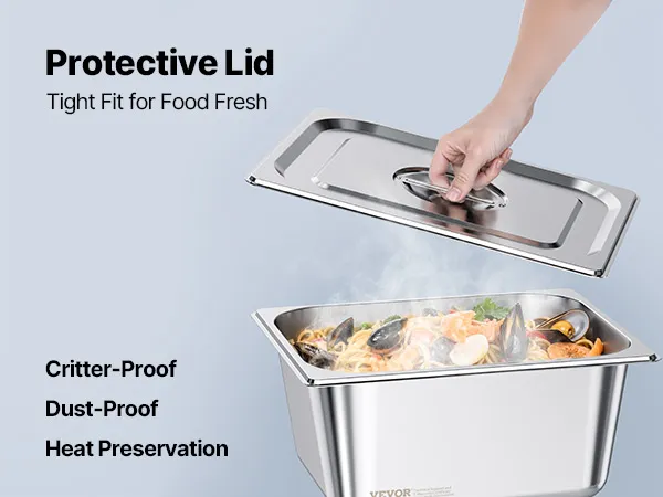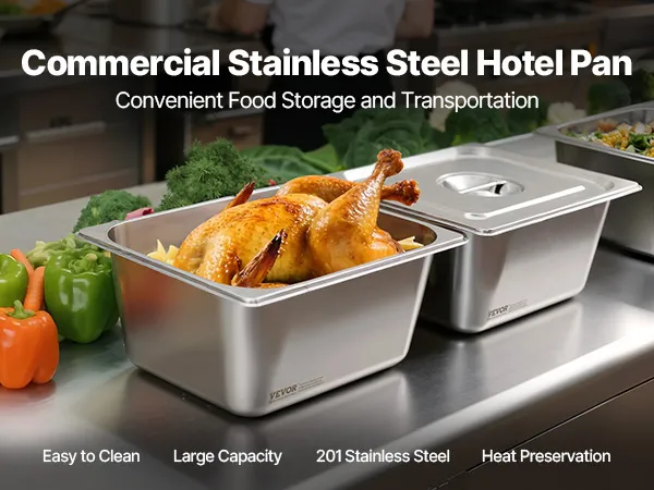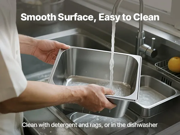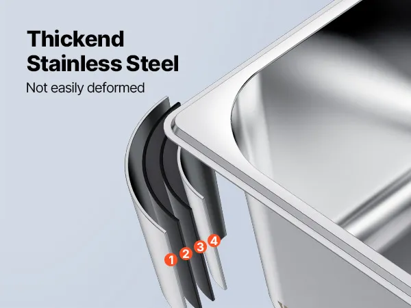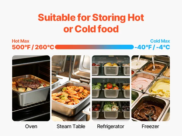 Roestvrij staal van commerciële kwaliteit: Onze Gastronorm-container is gemaakt van roestvrij staal van commerciële kwaliteit (22 gauge) SS201, wat zorgt voor een lange levensduur en uitstekende roestbestendigheid. Hij is ideaal voor warme en koude gerechten en is bestand tegen temperaturen van -4 °C tot 260 °C (-40 tot 500 °F). Geschikt voor professionele vaatwassers met hoge temperaturen, koelkasten, vriezers en meer.