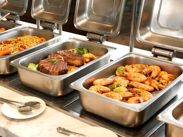 Gladde randen: Deze restaurantpan is naadloos, uit één stuk en voorzien van gladde randen die uw handen niet krassen tijdens gebruik of reiniging. De matte elektrolytische afwerking zorgt voor een moderne, professionele uitstraling – ideaal voor catering, buffetten en professionele keukens.