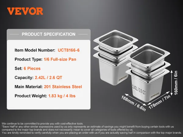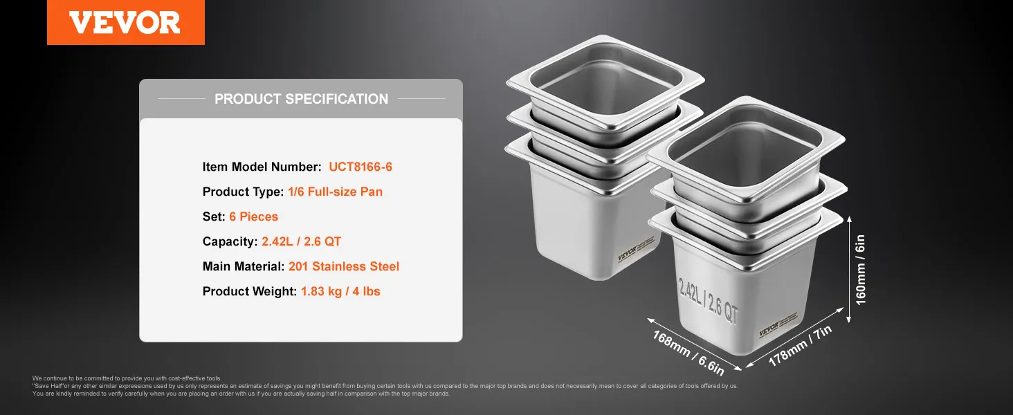 De VEVOR catering opslagpannen worden geleverd in een set van 6. Elke pan bevat een deksel om voedsel te beschermen tegen besmetting. Dit maakt ze ideaal voor commercieel gebruik. De set is perfect voor restaurants, cateringdiensten en andere voedselbedrijven. Deze deksels helpen voedsel vers en op de gewenste temperatuur te houden. Duurzame constructie en eenvoudig schoon te maken maken deze pannen een ongelooflijk nuttige aanvulling op elke commerciële keuken. Ze zijn ontworpen om te voldoen aan de eisen van drukke horeca-omgevingen.