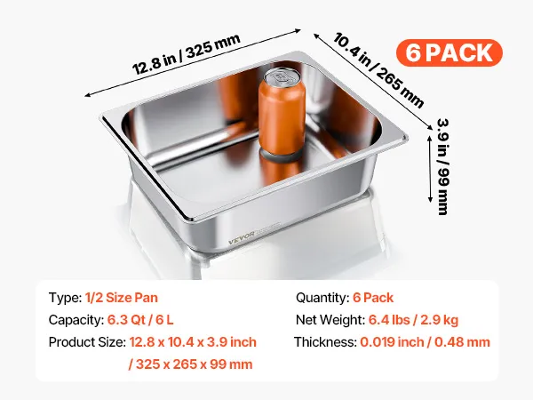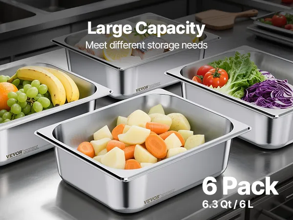 Genoeg ruimte voor eten: deze hotelpannenset (98 mm diep, 6-pack) heeft een inhoud van 6,3 liter (6 liter) en voldoet daarmee aan al je dagelijkse kookbehoeften. Ideaal voor het koken, bewaren en serveren van eten, ideaal voor vlees, groenten, fruit, ijs en meer.