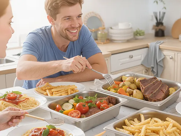 Doordacht ontwerp: deze voedselpan is ideaal voor bruiloften, feesten, restaurants en hotels. Of je nu maaltijden bereidt voor een groot gezin of een cateringbedrijf runt, de multipackset voldoet aan een breed scala aan kook- en serveerbehoeften.