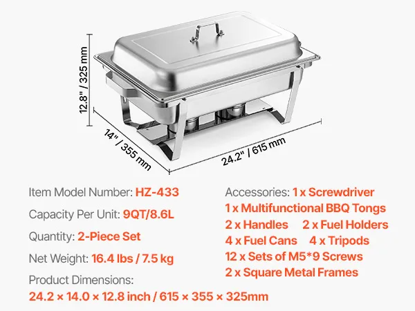 Robuust roestvrijstalen ontwerp: Deze chafingset van 8,5 liter, gemaakt van roestvrij staal SS201 dat geschikt is voor levensmiddelen, combineert duurzaamheid met een elegante hoogglansafwerking. Hij houdt warme en koude gerechten efficiënt koud en verbetert de presentatie van buffetten. Ideaal voor grote cateringevenementen en professionele horecagelegenheden.