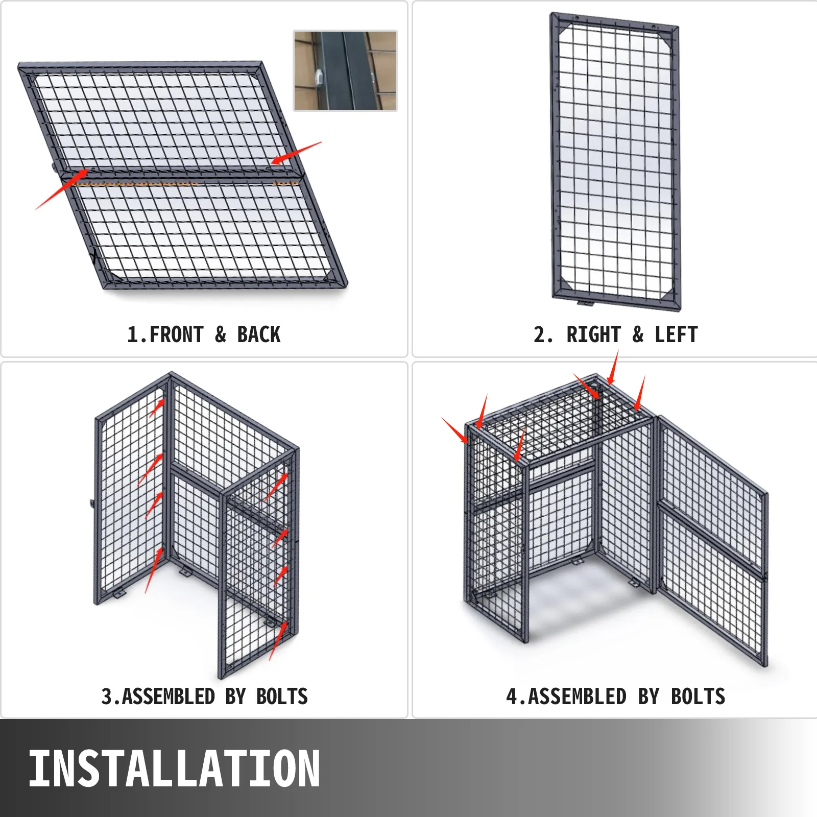 【GEMAKKELIJK TE GEBRUIKEN】- Bestaat uit vier draaddeuren die u kunt monteren met behulp van meerdere bouten, de kooi is voor goede ventilatie en zichtbaarheid van de inhoud. Om de stabiliteit en veiligheid te garanderen, leveren we ook vier M10-expansieschroeven om de vier voorgestanste montagegaten in voeten te bevestigen.