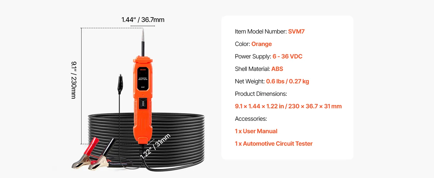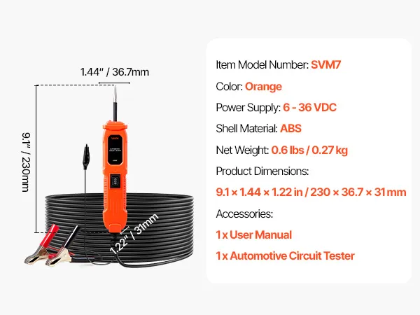 Brede toepassingen: Deze autocircuittester is geschikt voor auto's, pick-ups, motoren, SUV's, graafmachines, boten en laagspanningsapparaten (niet geschikt voor 220V-huishoudelijke circuits).