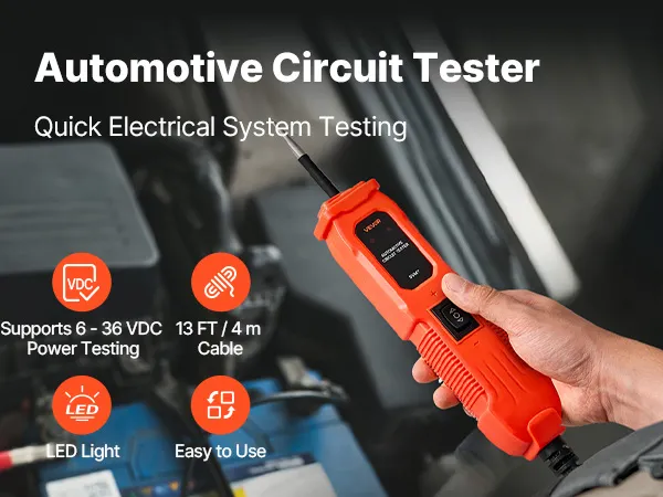VEVOR Automotive Circuit Tester Elektrische tester met circuitsonde en verlichting, 6-36 DCV-circuittester met 4 m kabel en ABS-behuizing, elektrische detectorzoeker voor sedan, SUV, camper, vrachtwagen
