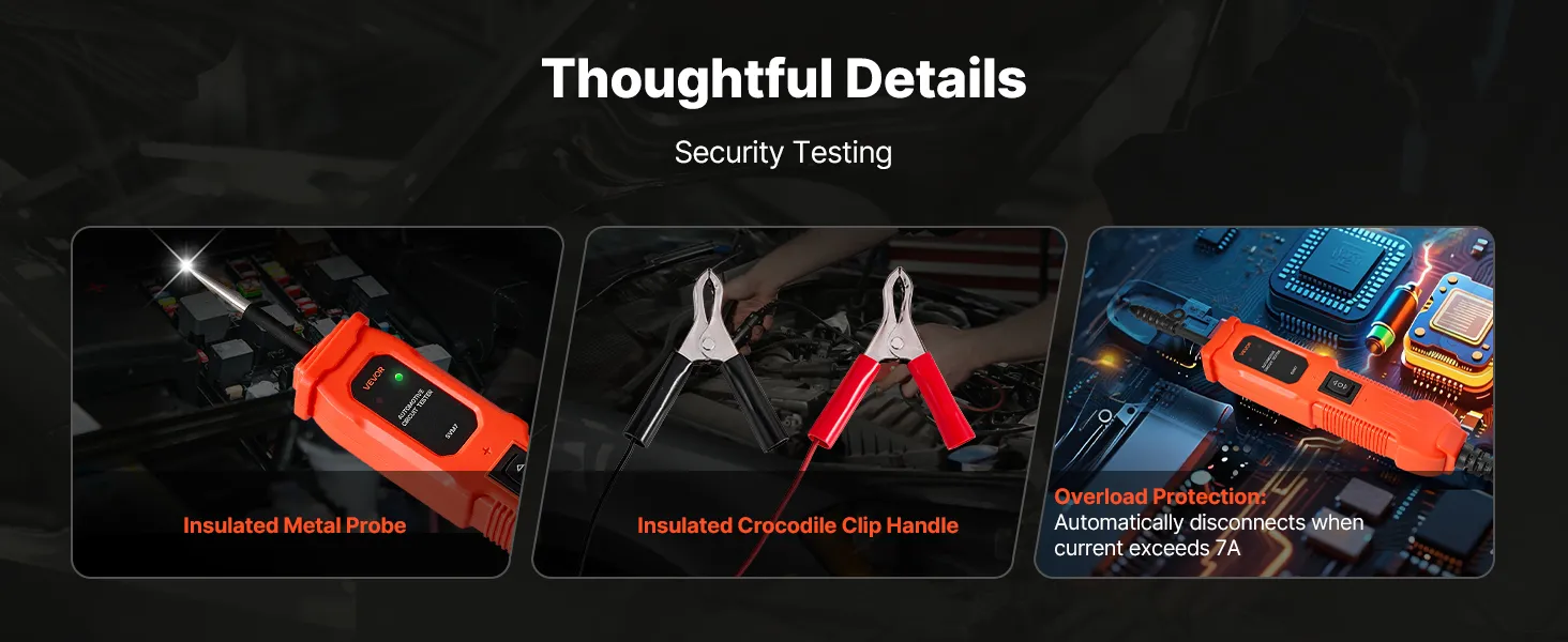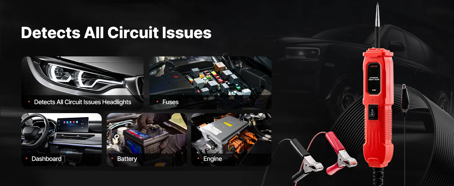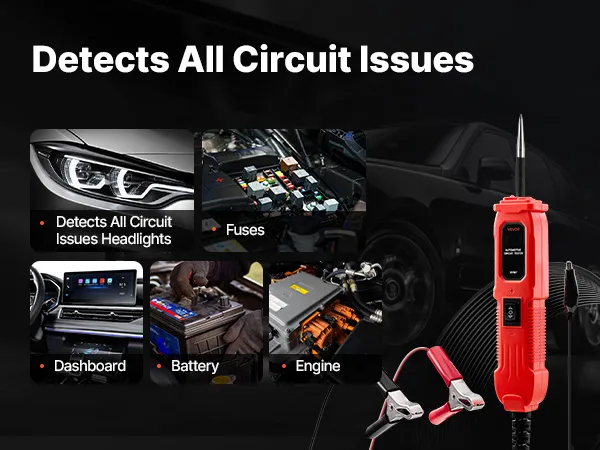 Onze circuitsonde is veelzijdig en kan circuits in verschillende autoonderdelen detecteren, waaronder koplampen, zekeringen, dashboards, accu's, motoren en meer.