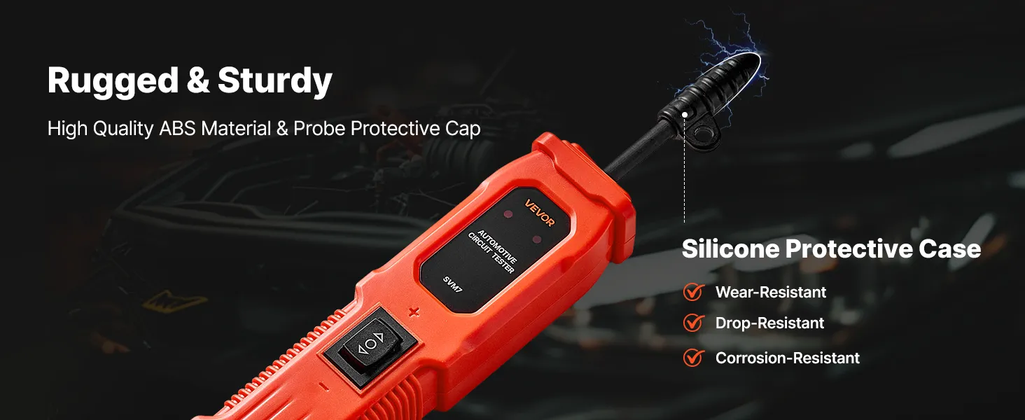 Robuuste constructie: onze circuitsonde is gemaakt van een hoogwaardige ABS-behuizing en een roestvrijstalen sonde met een siliconen dop, die bestand is tegen vallen, roest en corrosie. Dankzij het robuuste ontwerp met geïsoleerde bescherming is hij bijzonder duurzaam en betrouwbaar.