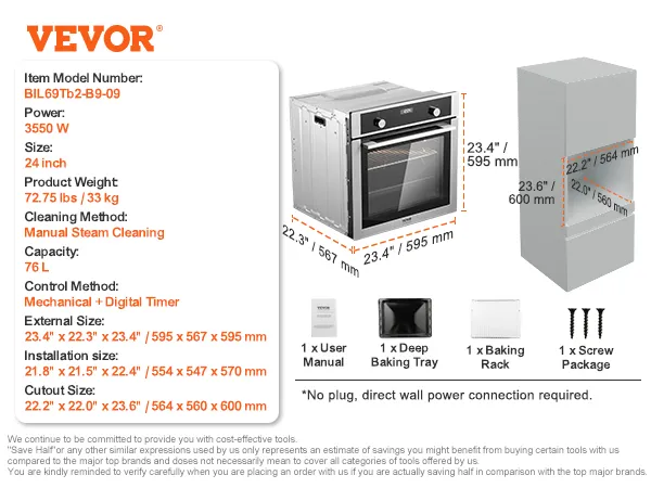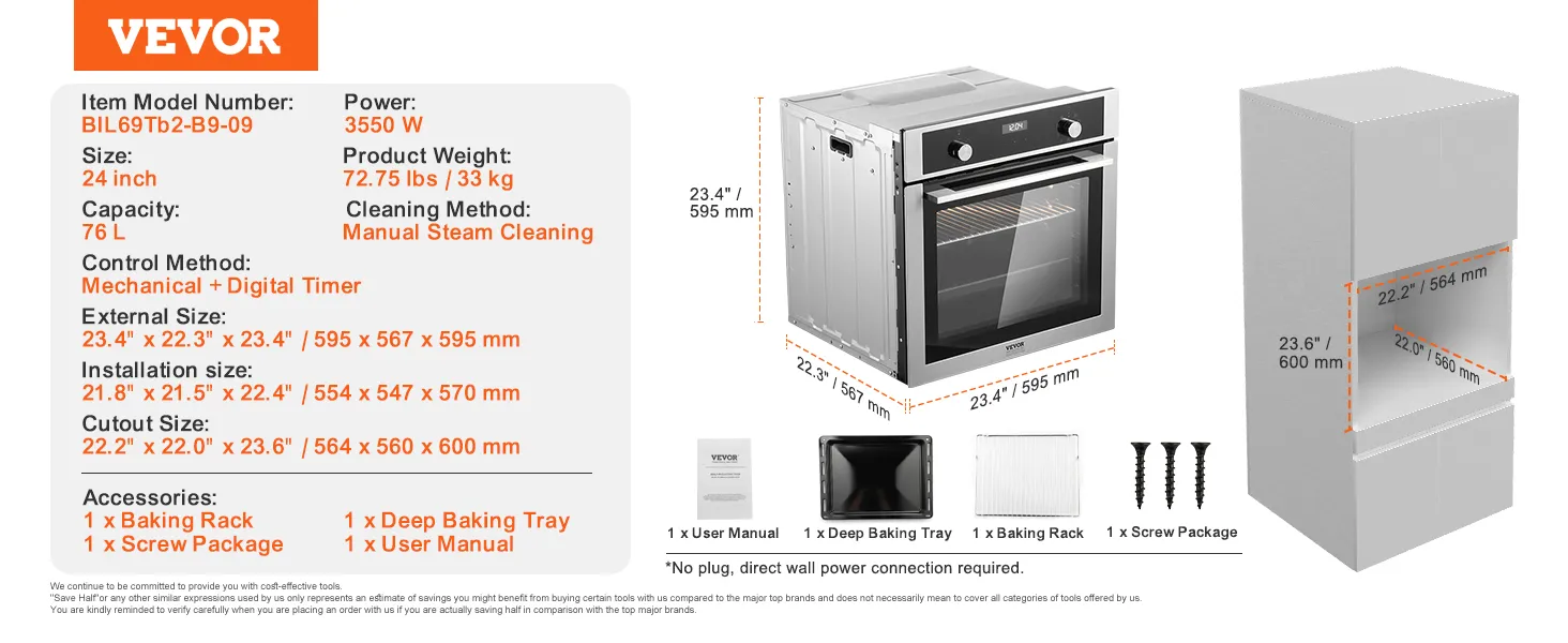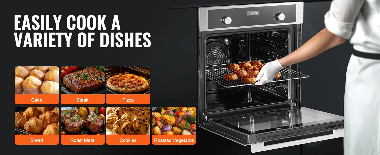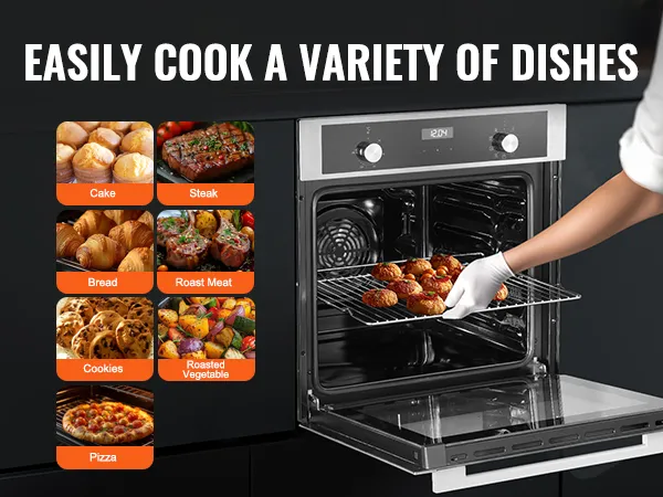 Perfect Fit for Your Kitchen: The VOVER built-in electric oven has dimensions of 23.4 x 22.3 x 23.4 inches (W x D x H). With its modern design, it can be installed beneath any electric or gas cooktop, perfectly matching your kitchen décor.