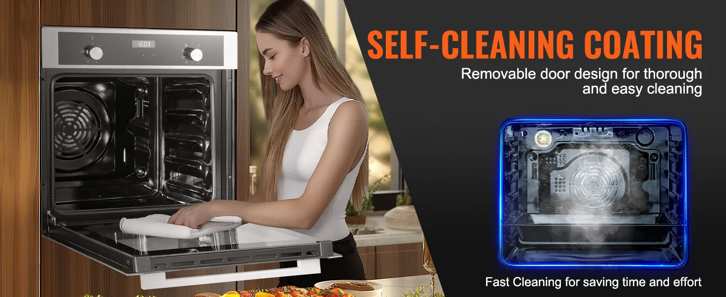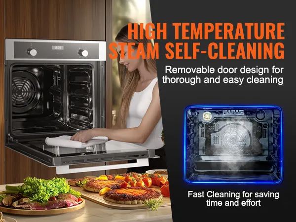 Easy to Clean: Features a high-temperature steam self-cleaning system. After cooking, the interior may get dirty with grease and residue. The high-temperature steam softens grease, and after the steam dries, you can easily wipe it clean, keeping the oven looking new and extending its lifespan.