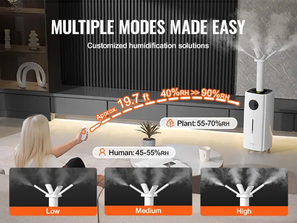 Slimme bevochtiging: de luchtbevochtiger levert een stabiele en krachtige watermistproductie met een vooraf ingesteld vochtigheidswaardebereik van 40%RH-90%RH en een timerinstelling van 12 uur. Het kan worden bediend via het bedieningspaneel en de afstandsbediening om een perfecte bevochtiging te garanderen, afgestemd op uw commerciële en industriële behoeften! Constante luchtvochtigheid, bespaart energie en behoudt een comfortabel lichaamsgevoel. Uitgerust met een UV-lamp om het water te zuiveren. Schakelt het licht uit in de slaapmodus.