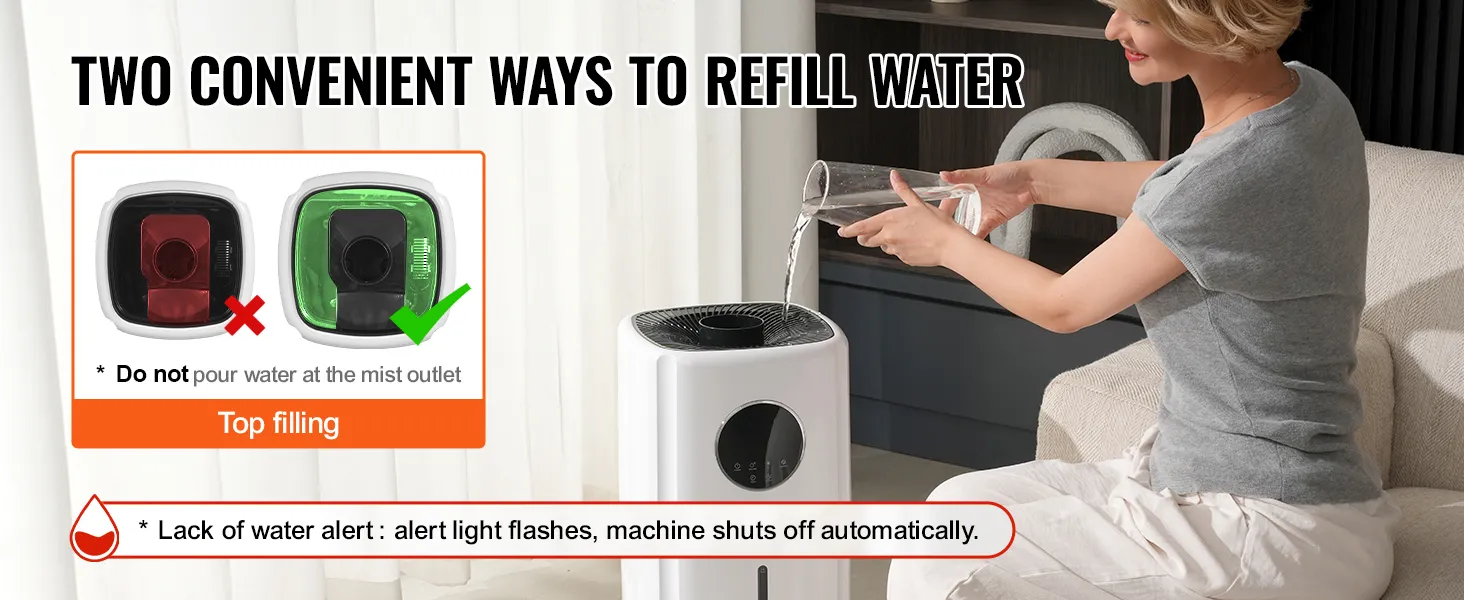 Vul het water één keer om aan de bevochtigingsbehoefte van de hele dag te voldoen, vooral geschikt voor het bevochtigingsprogramma thuis of op kantoor.