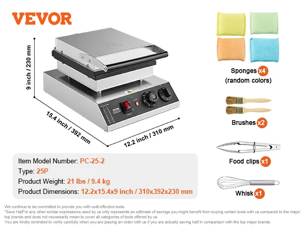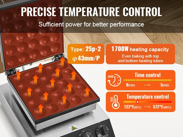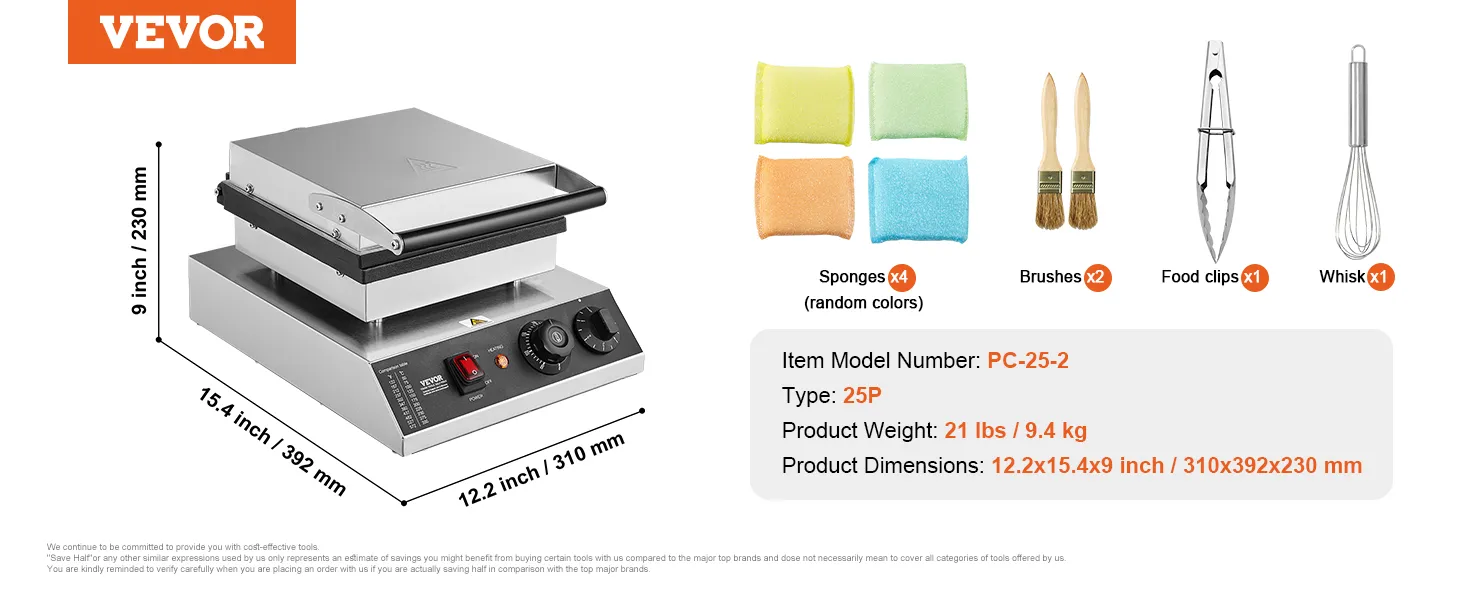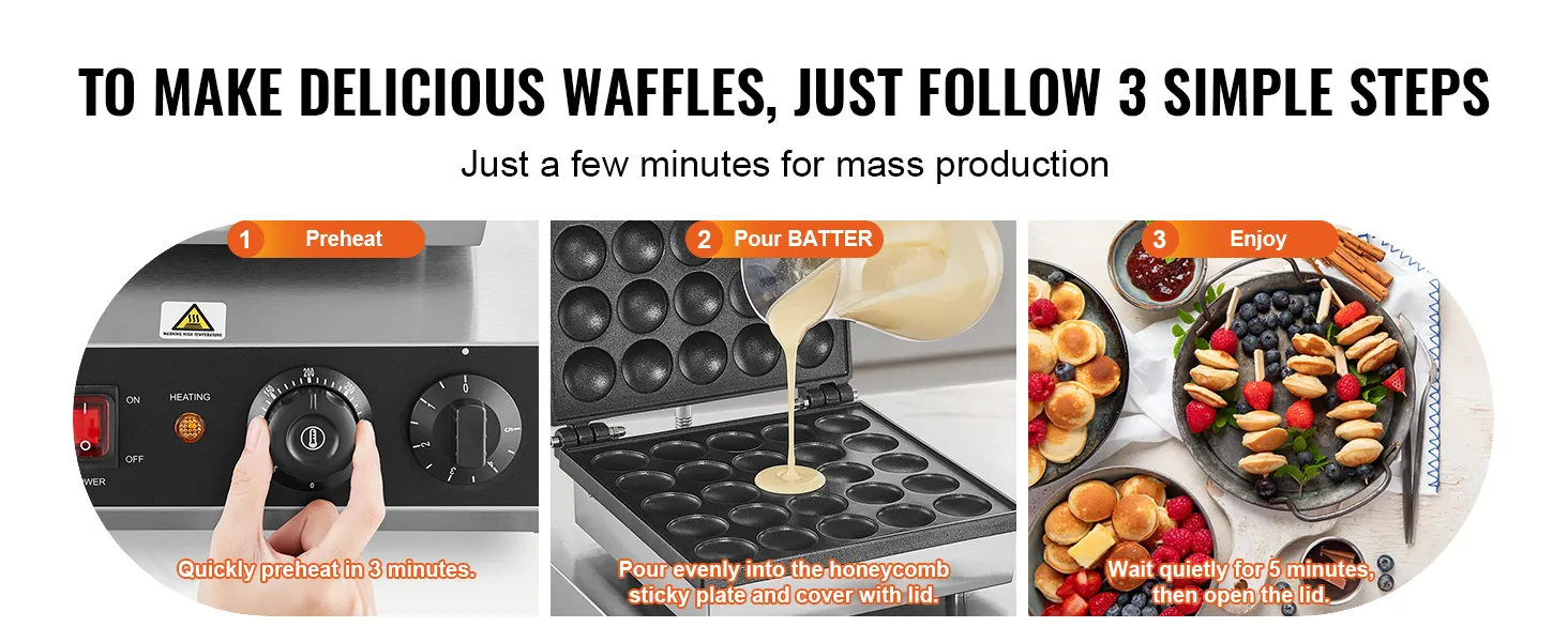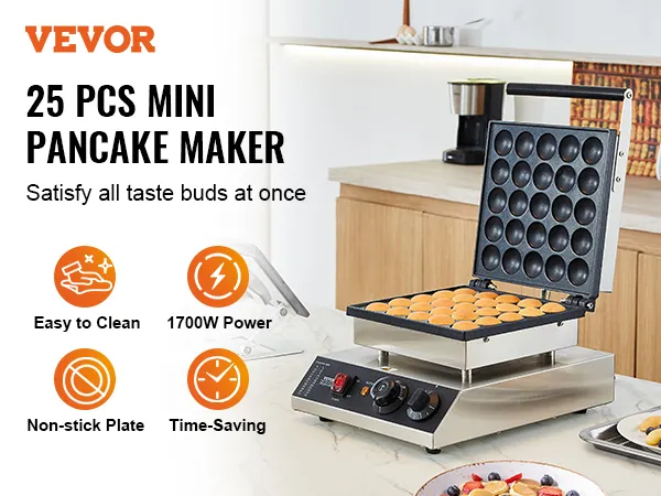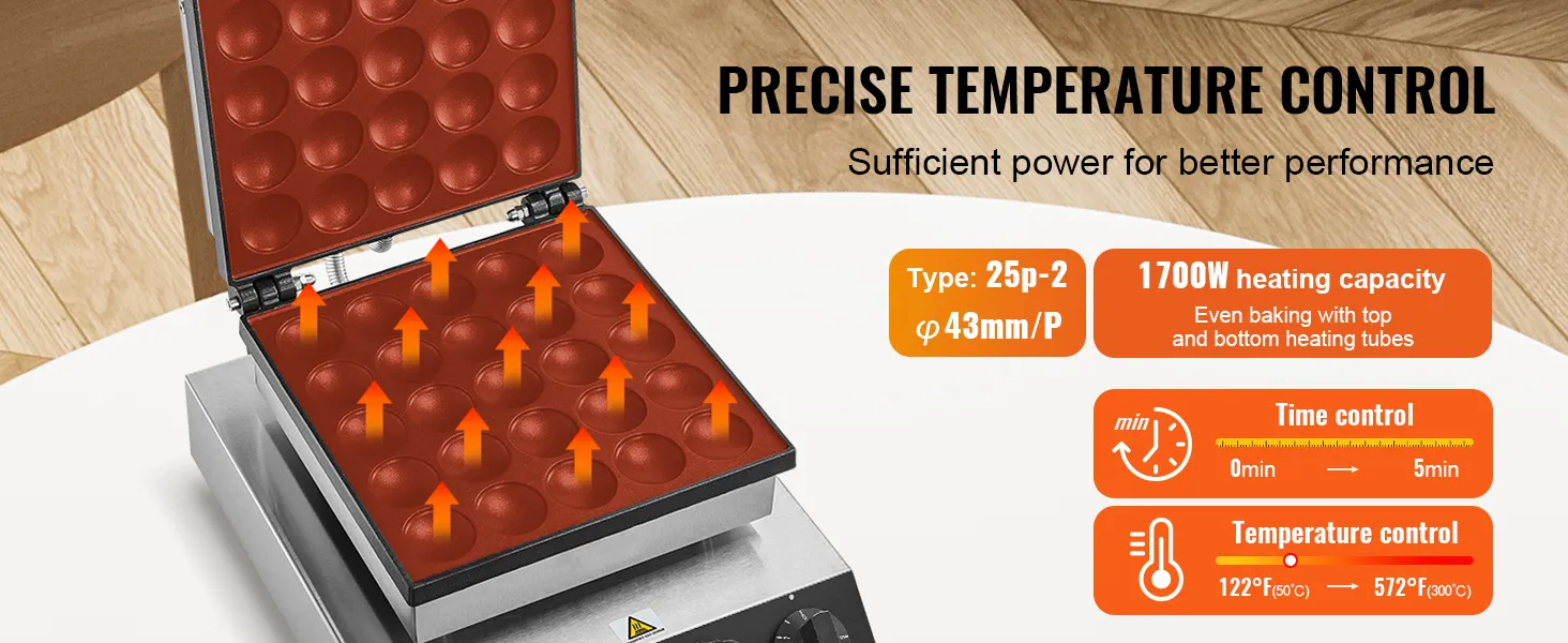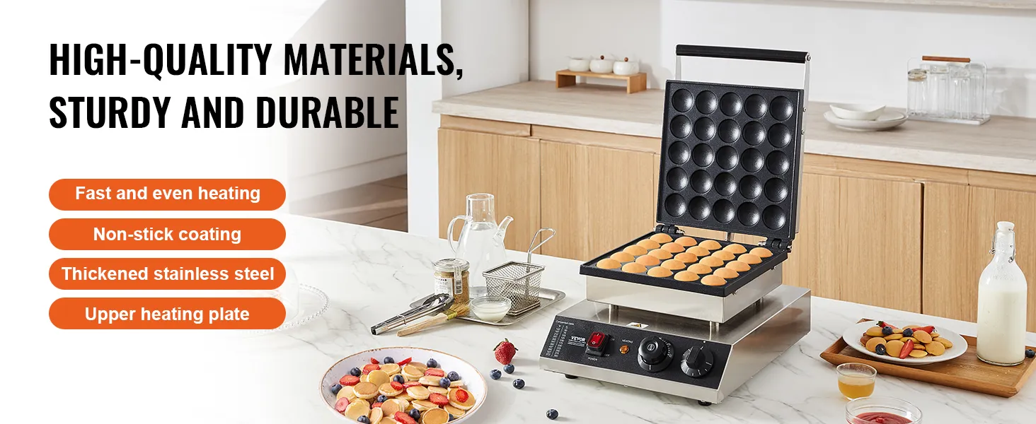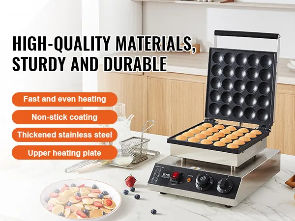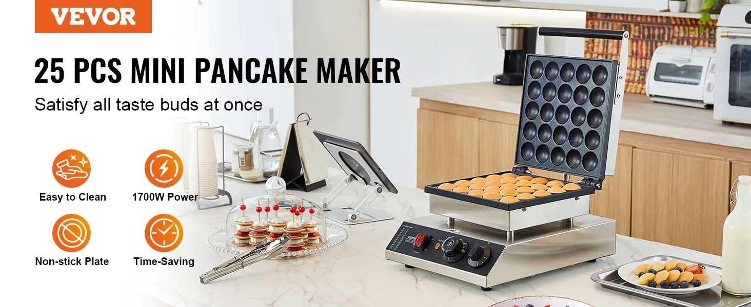 VEVOR Mini Pannenkoekenmaker Commerciële Nederlandse Mini Pannenkoekenmachine, 25 stuks, 43 mm Diameter, Dorayaki Bakmachine, 1700 W, Temperatuur- en Tijdsregeling, in Keukens, Cafés en Restaurants