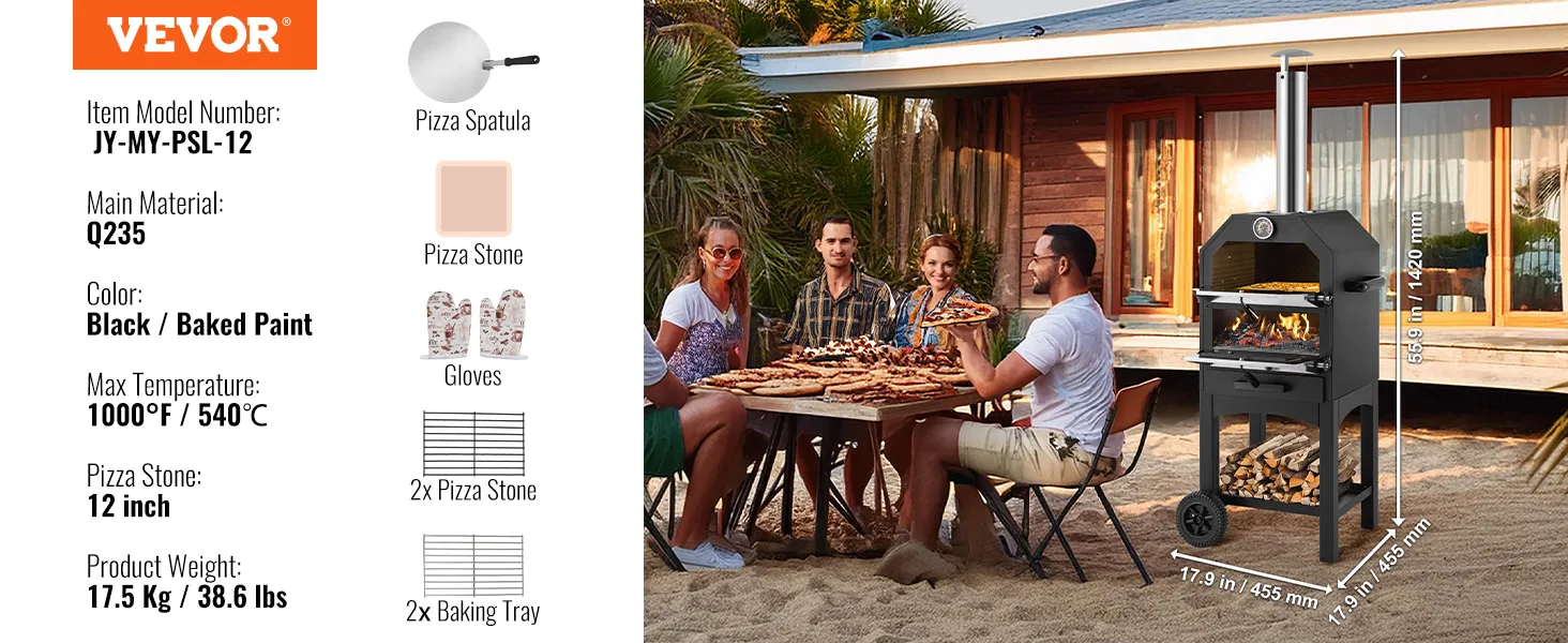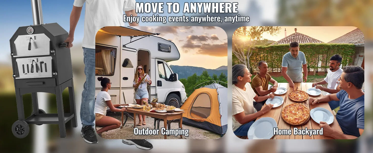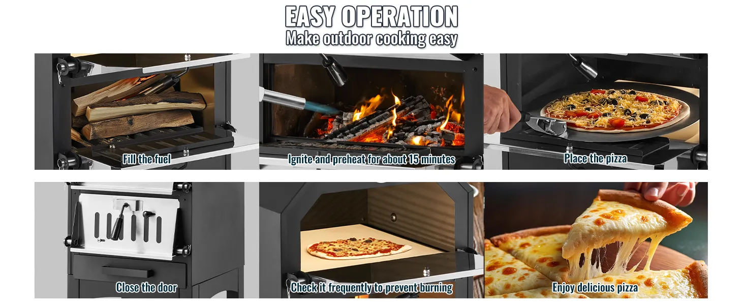 Veelzijdige toepassing: onze pizzaoven voor buiten wordt veel gebruikt op verschillende bakplaatsen buiten, zoals achtertuin, camping, park, enz., waardoor u een onvergetelijke bakervaring krijgt.