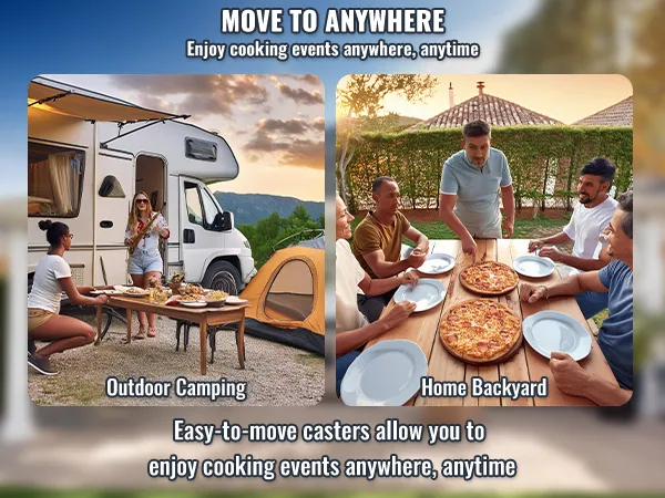 Uitgerust met mobiele wielen kan hij gemakkelijk naar elke buitenlocatie worden geduwd, ideaal voor bijeenkomsten met familie en vrienden.