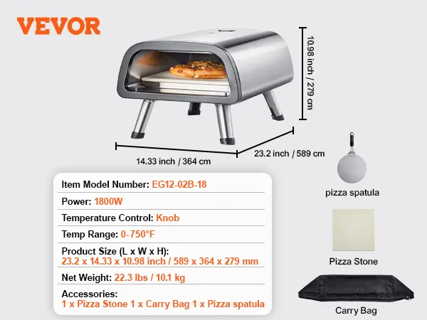 Outdoor-Ready: Place this oven on any flat, stable, and non-flammable surface. Tested to IPX4 waterproof standards, it’s ready for use even on rainy camping trips. Designed to bake 12-inch pizzas, it’s perfectly sized to satisfy without waste.