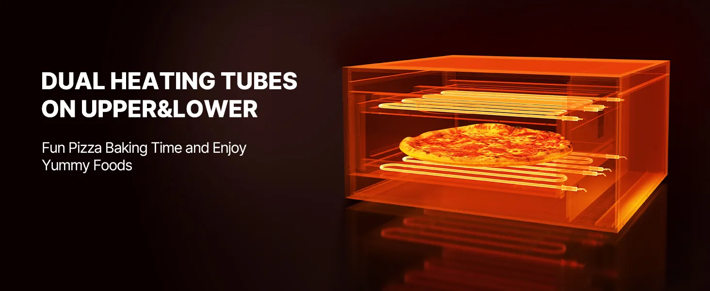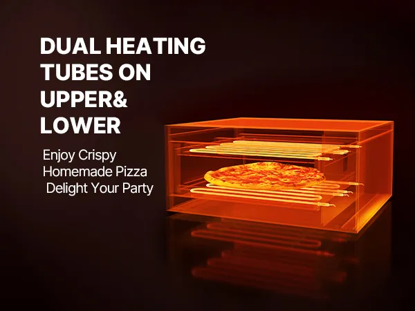 In just few minutes, the high-powered pizza oven enables you to create mouthwatering, crispy pizzas. With its top and bottom dual heating tubes, it delivers 360° uniform baking and rapid heat for fast cooking, resulting in well cooked food every time.
