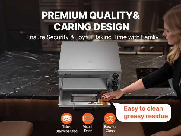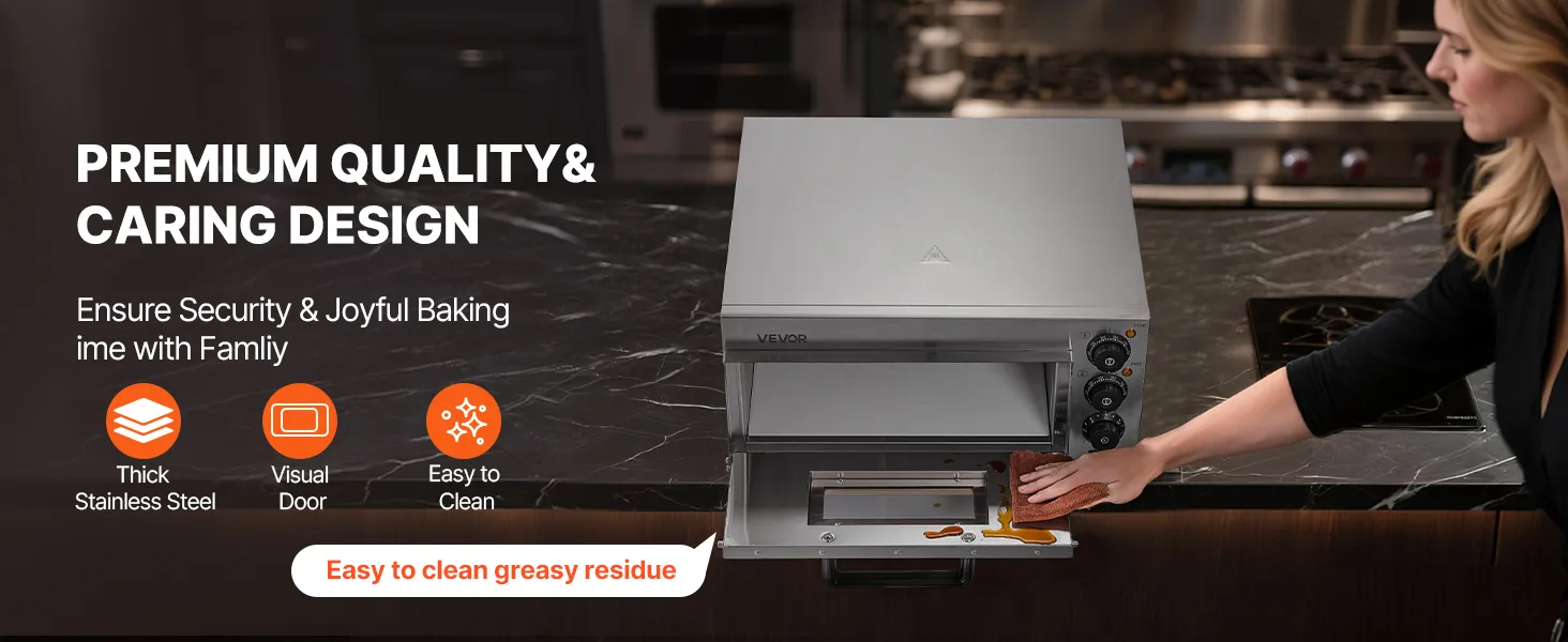 Crafted with food-grade stainless steel, the commercial pizza oven ensures not only durability but also a healthy baking environment. Moreover, the non-stick interior material makes for effortless cleaning and fun cooking.