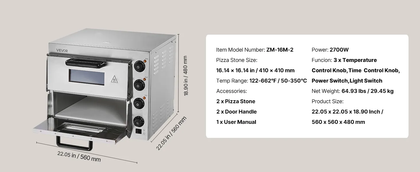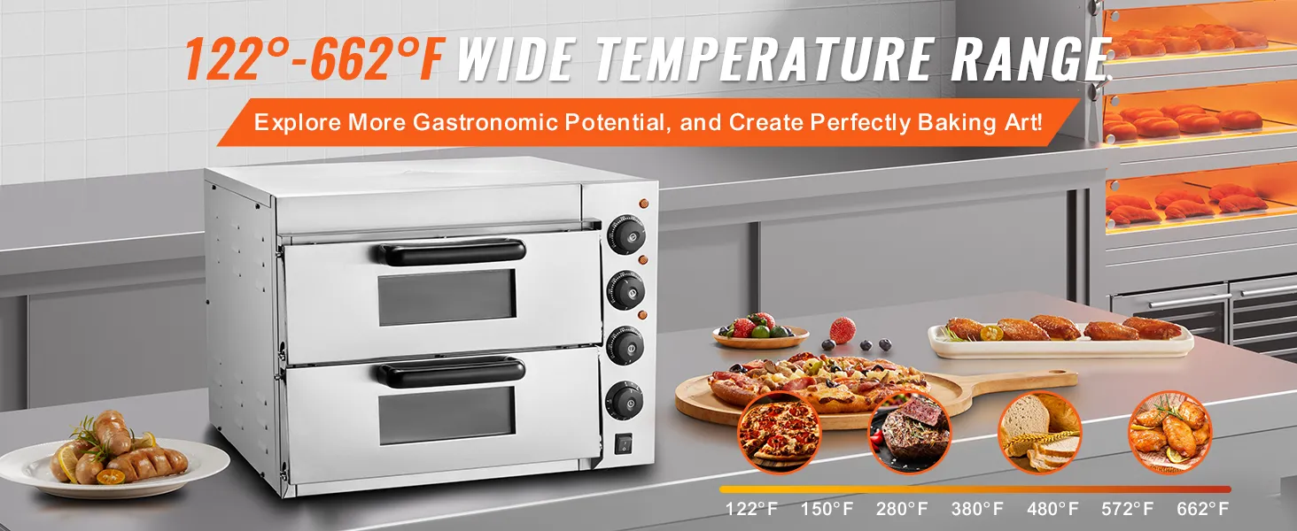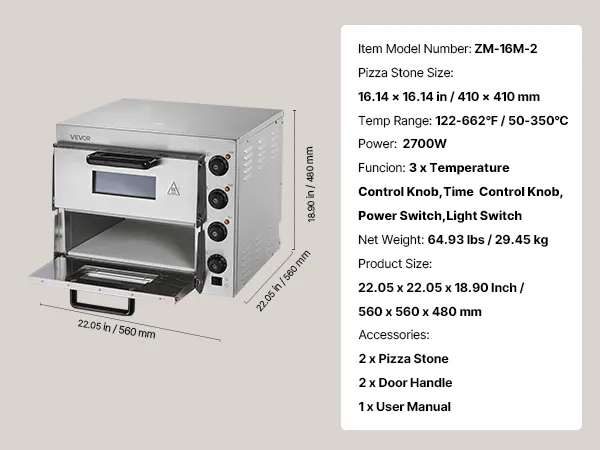 Het is gemaakt van roestvrij staal dat geschikt is voor levensmiddelen en heeft een nauwkeurige temperatuurregeling van 50 tot 350 °C. Het hoge vermogen en de drie verwarmingsbuizen zorgen voor een gelijkmatige en efficiënte warmteverdeling en zorgen keer op keer voor perfecte bakresultaten!