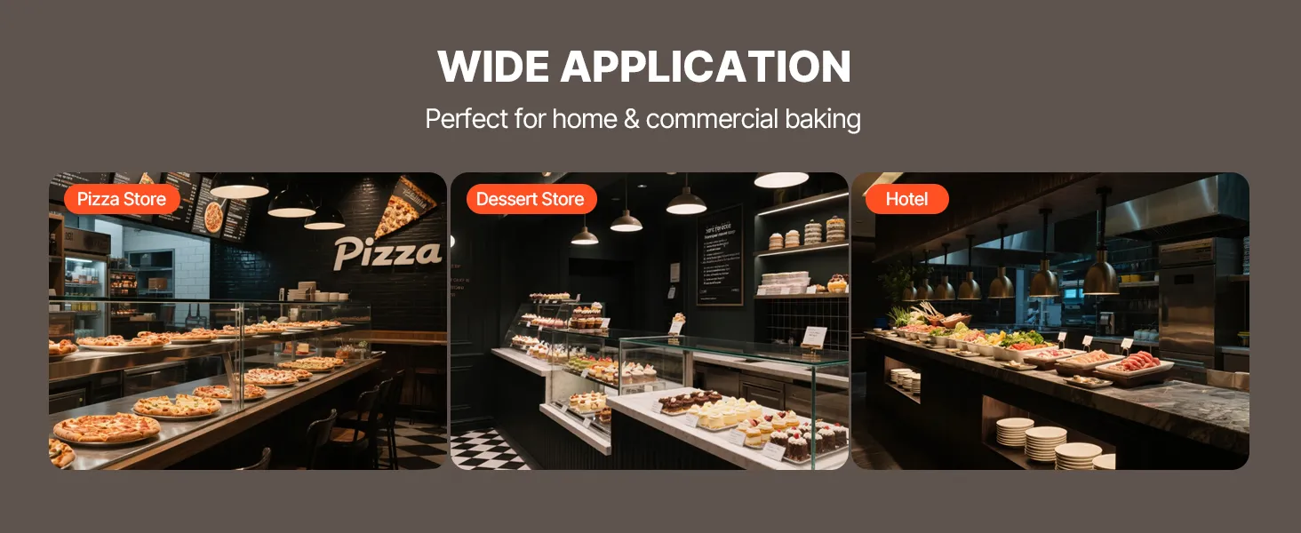 Onze pizzaoven op aanrecht is ideaal voor thuis en commercieel gebruik. Of u nu een restaurant, keuken, snackbar of bakkerij runt of deze nodig heeft voor familiebijeenkomsten en feesten, het is de ideale keuze.