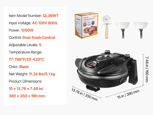 High-Temperature Fast Baking: This pizza oven features 1200W power and double upper and lower heating tubes. It can reach a temperature of 788°F, ensuring you make delicious crispy pizzas in 6 minutes without turning on oven