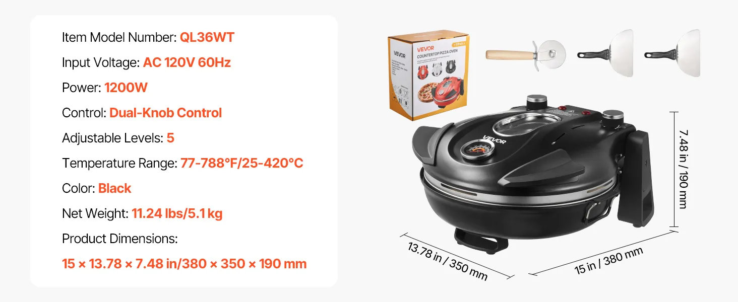 Versatile Cooking: Featuring a deep design, the countertop pizza maker provides ample space. It is a versatile helper, ideal for baking thick homemade pizza, wings, sausages, steaks, and other dishes