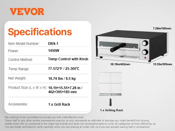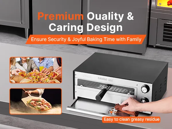 Moeiteloos bakken: De elektrische pizzaoven van VEVOR biedt een veilige en moeiteloze bakervaring. De uitneembare kruimellade en het grillrooster, samen met de antiaanbaklaag aan de binnenkant, maken schoonmaken een fluitje van een cent. Hij bakt knapperige pizza's van 30,5 cm, waardoor hij ideaal is voor keukens, studentenhuizen, campings en feesten.
