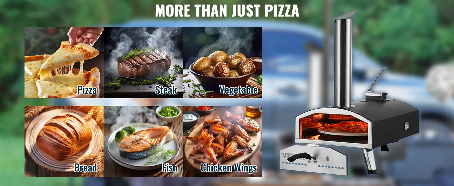Not limited to pizza; cook various meats, fish, and vegetables.