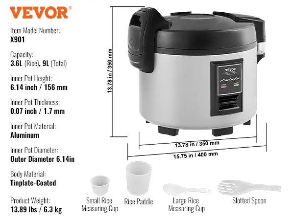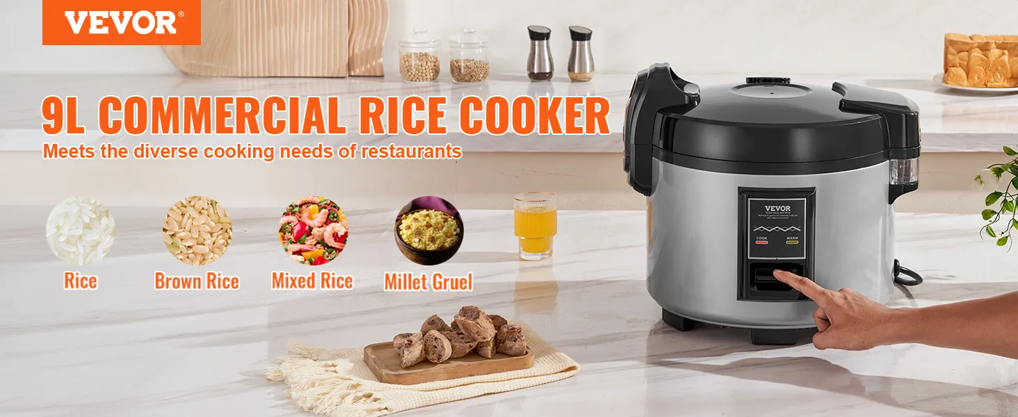 VEVOR Commercial Rice Cooker, 45-Cup Rice Cooker, 9 Liter Large Rice Cooker and Warmer with Nonstick Inner Pot, Fast Cooking and 12-Hour Keep Warm, with Rice Cup and Paddle, for Restaurant