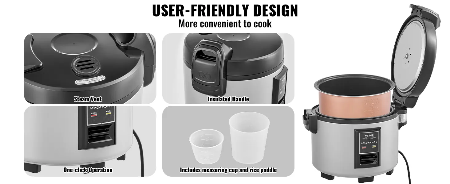 Durable Construction: The VEVOR commercial rice cooker is made entirely from high-quality materials, resistant to rust and corrosion, durable, and resistant to wear even with long-term use. It's easy to clean and maintain, extending its service life.
