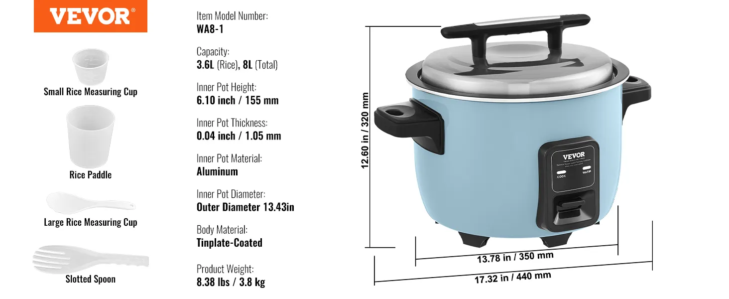 Super Large Capacity: With a total capacity of 8 liters and the ability to cook 3.6 liters of rice at once (equivalent to 40 cups of rice), it's ideal for meeting the needs of 30-40 people. Whether for large family gatherings, parties, or commercial settings, this rice cooker can serve you well.