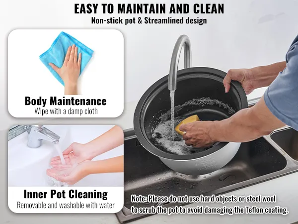 High-Quality Non-Stick Inner Pot: The non-stick inner pot and streamlined design make cleaning effortless. The non-stick surface prevents rice from sticking together, ensuring delicious and fluffy grains every time.