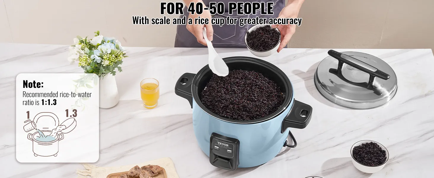 Durable Construction: The VEVOR commercial rice cooker is made entirely from high-quality materials, resistant to rust and corrosion, durable, and resistant to wear even with long-term use. It's easy to clean and maintain, extending its service life.