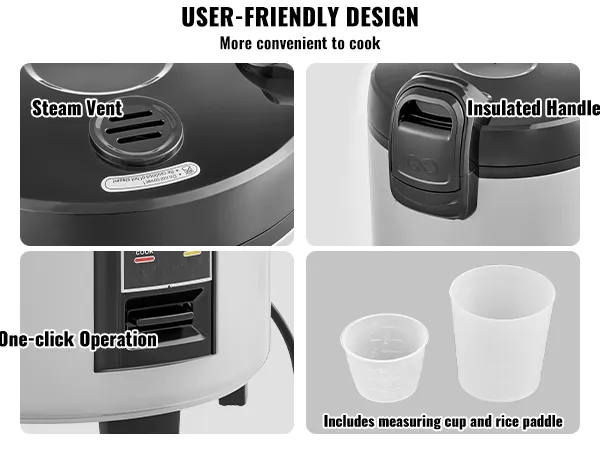 Duurzame constructie: de VEVOR commerciële rijstkoker is volledig gemaakt van hoogwaardige materialen, roest- en corrosiebestendig, duurzaam en slijtvast, zelfs voor langdurig gebruik. Het is gemakkelijk schoon te maken en te onderhouden, wat de levensduur verlengt.