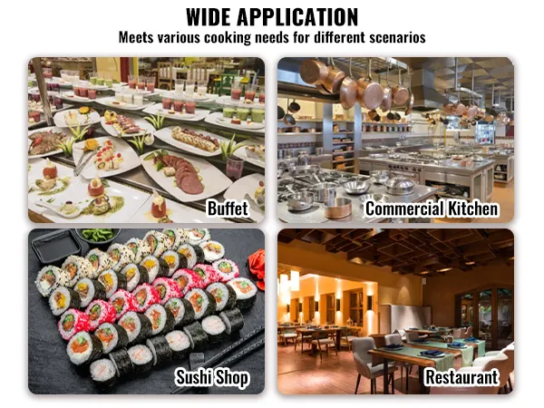 Deze commerciële rijstkoker wordt veel gebruikt in restaurants, commerciële keukens, foodtrucks, grote familiebijeenkomsten en andere gelegenheden waarbij rijst voor meerdere personen moet worden bereid. Het is veelzijdig en voldoet aan de kookbehoeften van verschillende groepen.