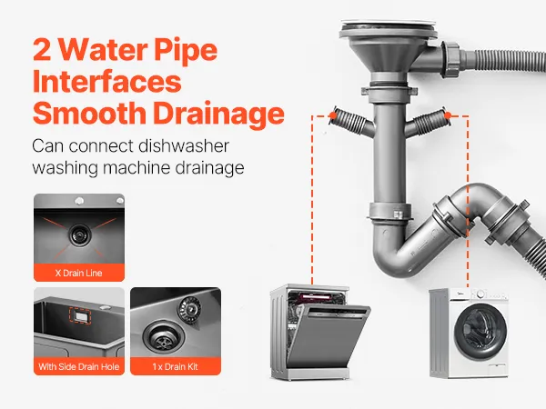 Snel drainagesysteem: deze bargootsteen heeft een X-vormig afvoerontwerp aan de onderkant, uitgerust met een afvoerkit om een snelle afvoer te garanderen en waterophoping te voorkomen. Het beschikt ook over een afvoeropening aan de zijkant en twee waterleidinginterfaces voor het aansluiten van vaatwassers, waardoor het legen soepel verloopt zonder de ophoping van voedselresten.