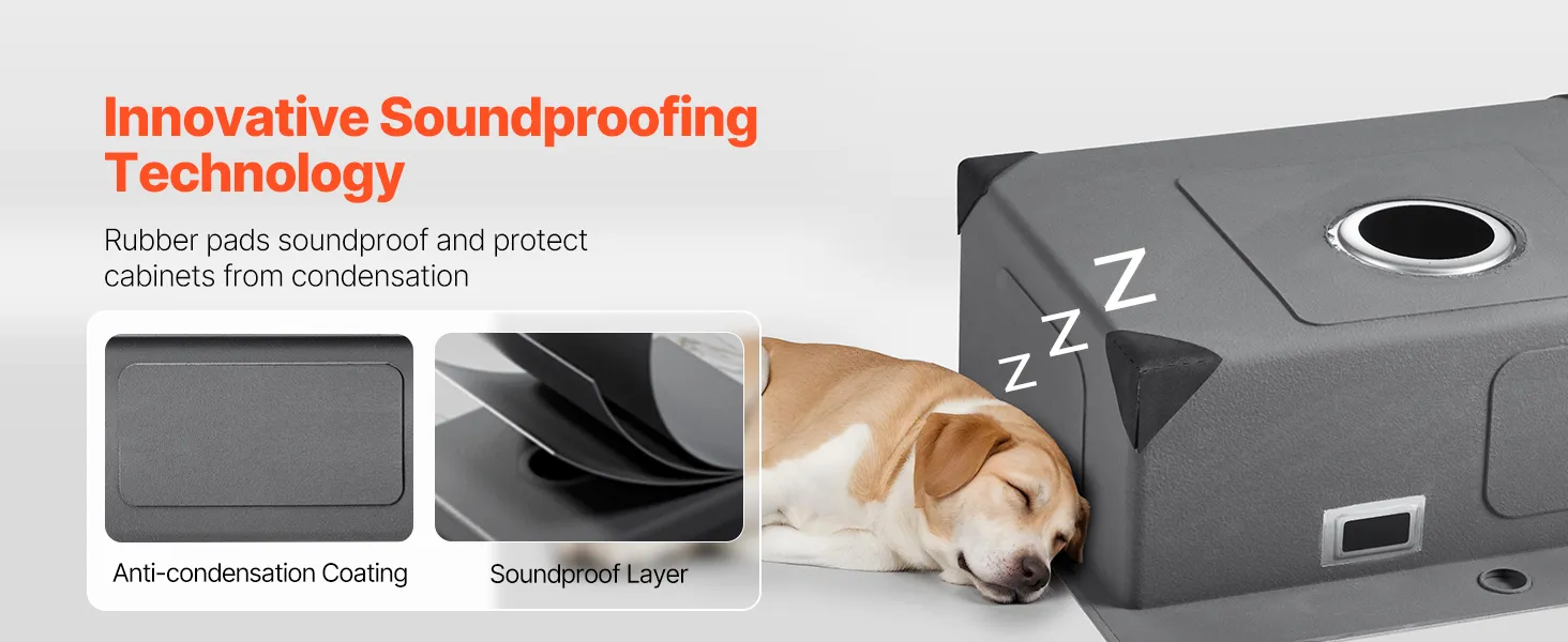 Geluidsisolatie & anticondenslaag: Deze huishoudelijke vaatwasser is ultrastil en voorzien van dikkere, zachtere geluidsdempende rubberen pads. De geluiddichte pads en isolatiematerialen van de basislaag verminderen het geluid en zorgen voor een uitstekende geluidsisolatie en stilte, terwijl de dikke basislaag condensatie voorkomt.