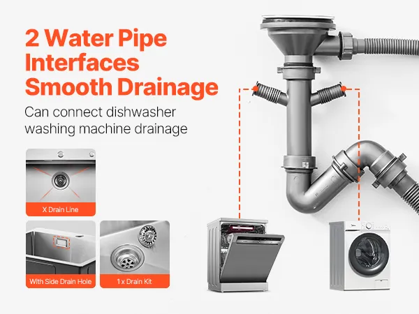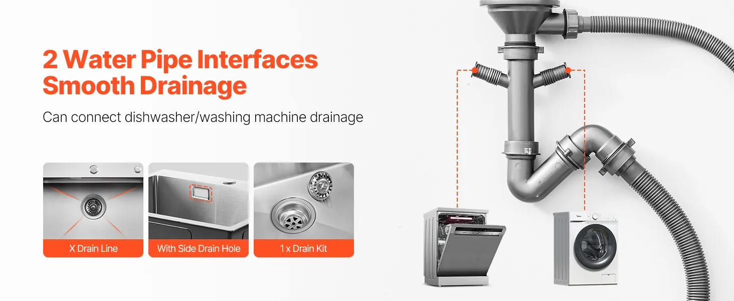 Snel drainagesysteem: deze bargootsteen heeft een X-vormig afvoerontwerp aan de onderkant, uitgerust met een afvoerkit om een snelle afvoer te garanderen en waterophoping te voorkomen. Het beschikt ook over een afvoeropening aan de zijkant en twee waterleidinginterfaces voor het aansluiten van vaatwassers, waardoor het legen soepel verloopt zonder de ophoping van voedselresten.