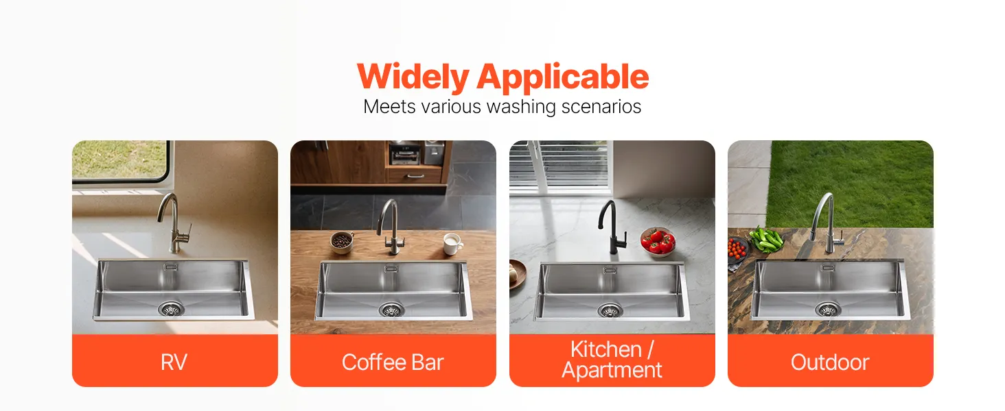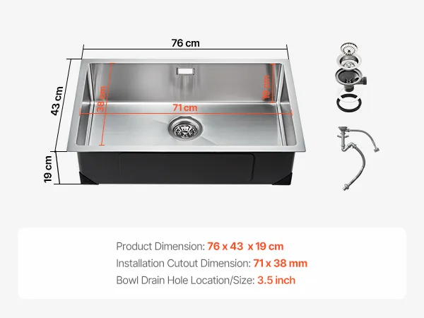 Eenvoudige onderbouwinstallatie: onze roestvrijstalen spoelbak vereist geen grote veranderingen aan uw keukenkasten of aanrecht. De ultradikke 3 mm 304 roestvrijstalen rand zorgt voor een veilige installatie en het dikke spoelbaklichaam zorgt voor duurzaamheid.