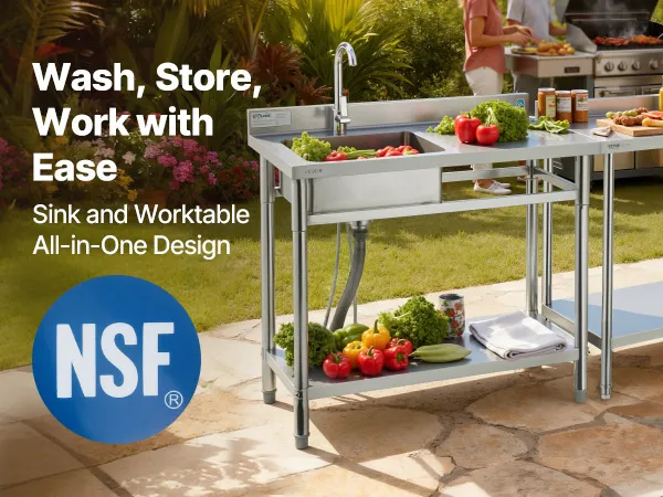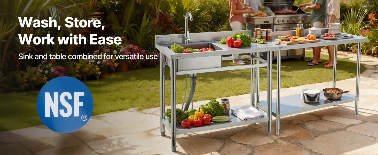 Versatile Use & Flexible Setup: Ideal for outdoor kitchen, patio, garage, bar, restaurant, or buffet. The commercial sink features adjustable feet ensure balance on uneven ground