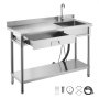 VEVOR RVS spoelbak (120 x 50 x 94 cm), enkele kom met kraan en lade, keukenwastafel voor garage, restaurant, wasruimte, buitenwastafel met werkblad (links)