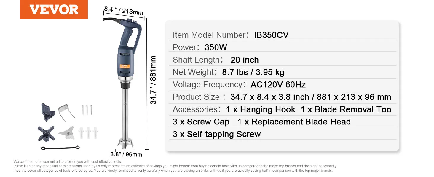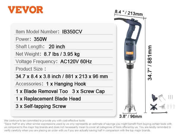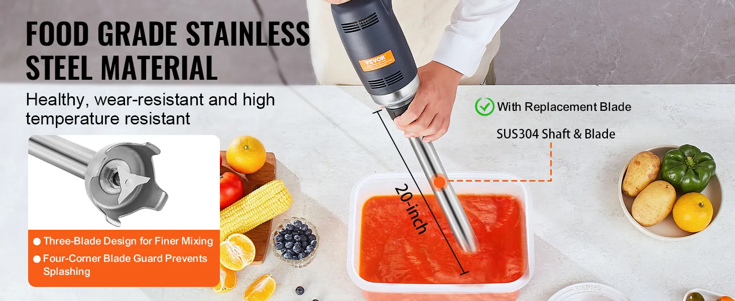 Zeg vaarwel tegen grote keukenmachines en kies voor de krachtige staafmixer van VEVOR om een stap voor te blijven en elke zakelijke kans te benutten!