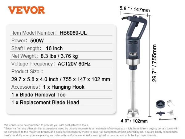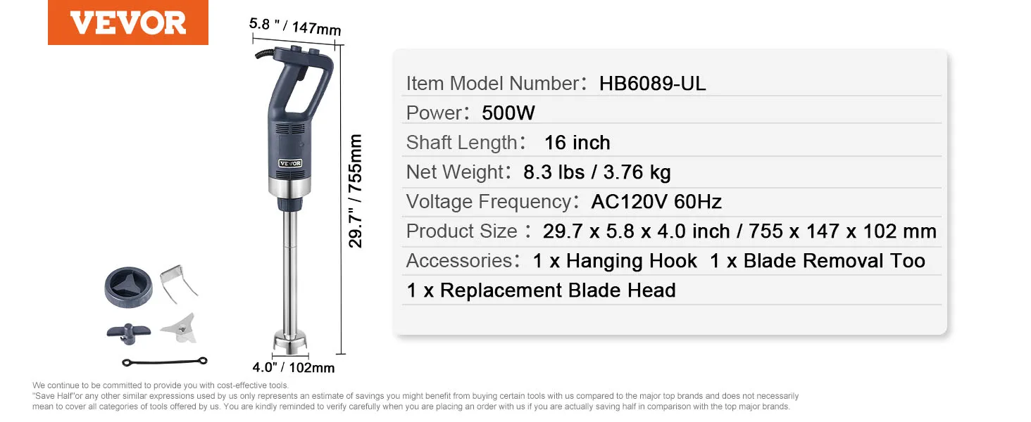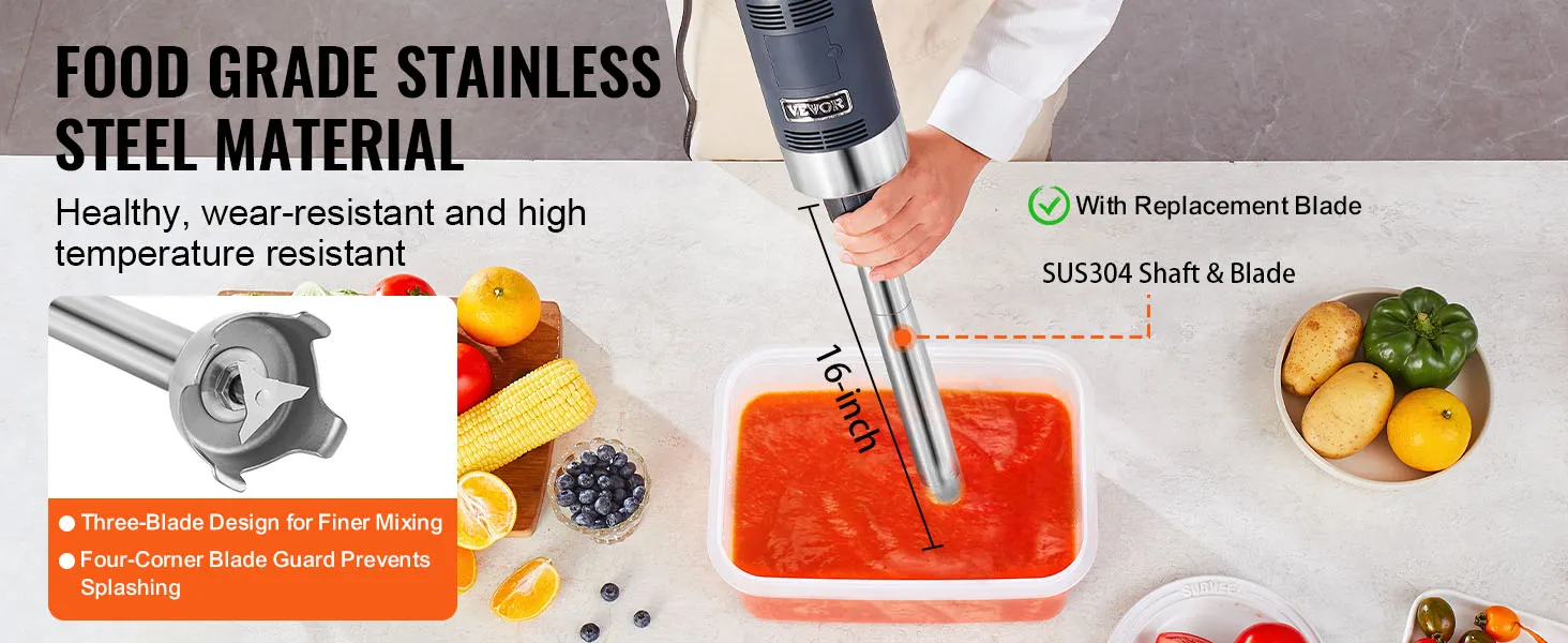 Say goodbye to bulky countertop food processors and choose VEVOR Heavy-Duty Immersion Blender to stay ahead of the curve and seize every business opportunity!