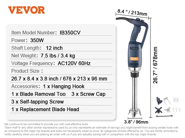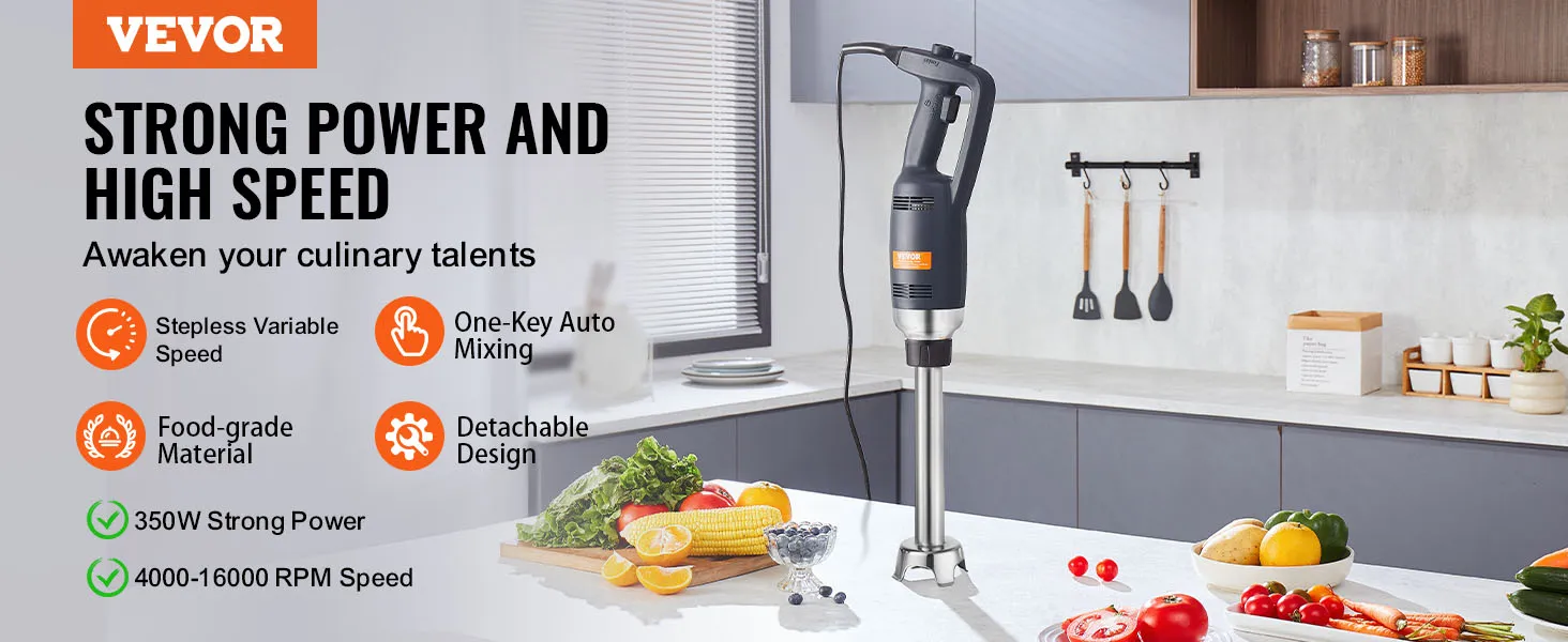 Zeg vaarwel tegen grote keukenmachines en kies voor de krachtige staafmixer van VEVOR om een stap voor te blijven en elke zakelijke kans te benutten!