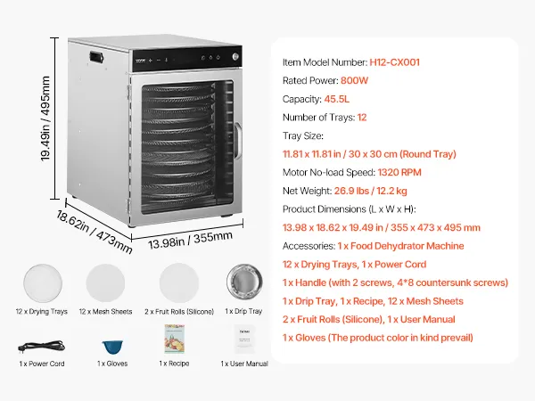 With a 12-layer capacity, the large dehydrator machine is perfect for dehydrating various ingredients, including fruits, vegetables, jerky, herbs, seafood, grains, and more. It also comes with a recipe, enabling you to make various healthy, homemade dried food easily.