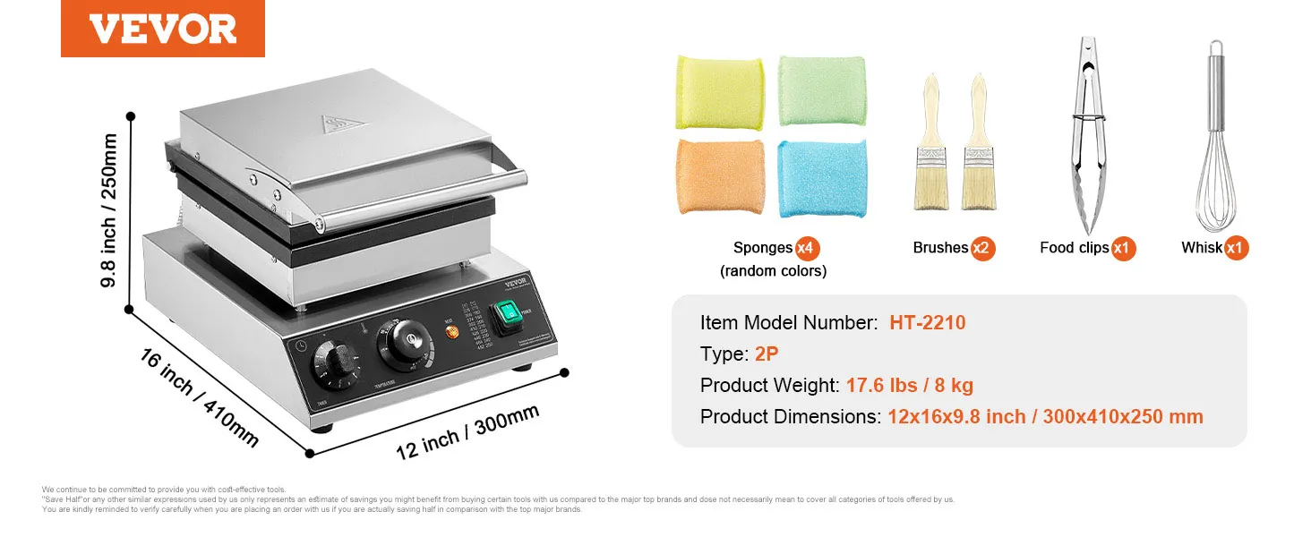 Carefully Designed Details: Made with stainless steel, four rubber feet at the base enhance the stability of our waffle baker machine, keeping it steady during operation. The hinge connecting the two heating plates supports flexible closing and opening. Moreover, it comes equipped with a variety of accessories to assist in baking.
