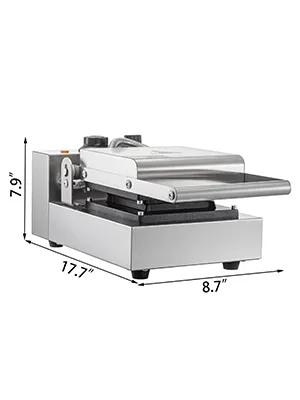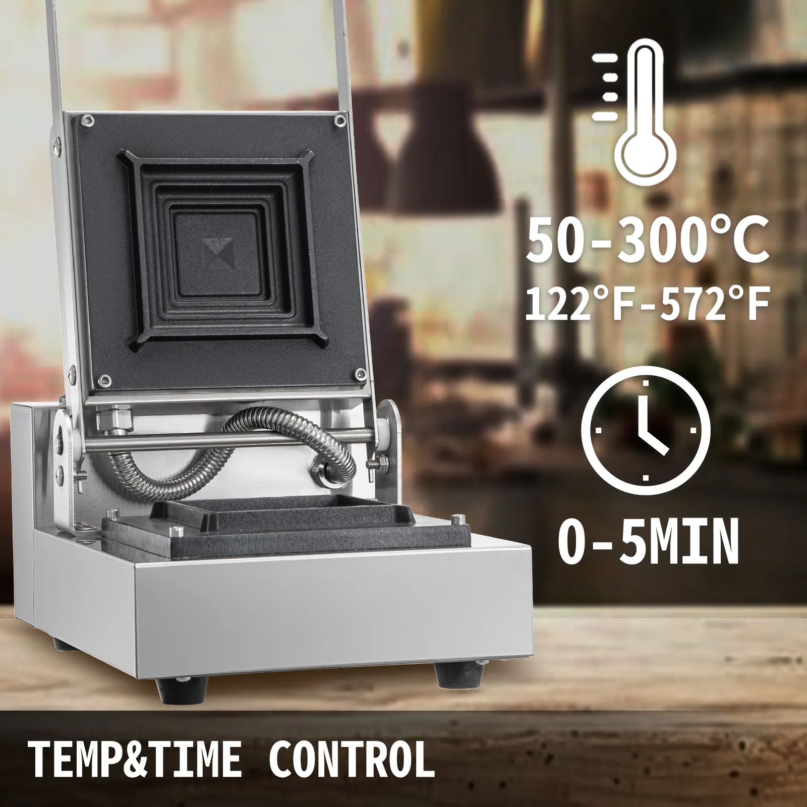 Voorzien van parallelle verwarmingsplaten, gemaakt van gegoten aluminium. De antiaanbaklaag van Teflon voorkomt dat sandwiches aanbranden. De enkele bakplaat is 5,1 "x5,1 "(130x130 mm) groot.
