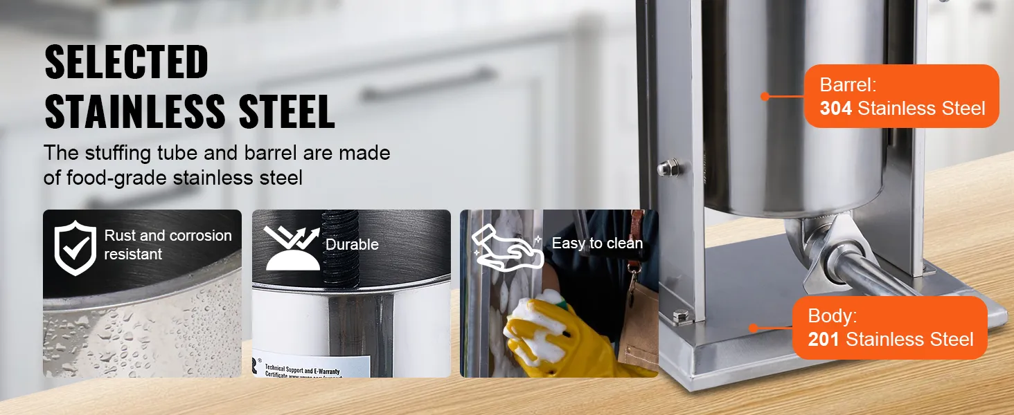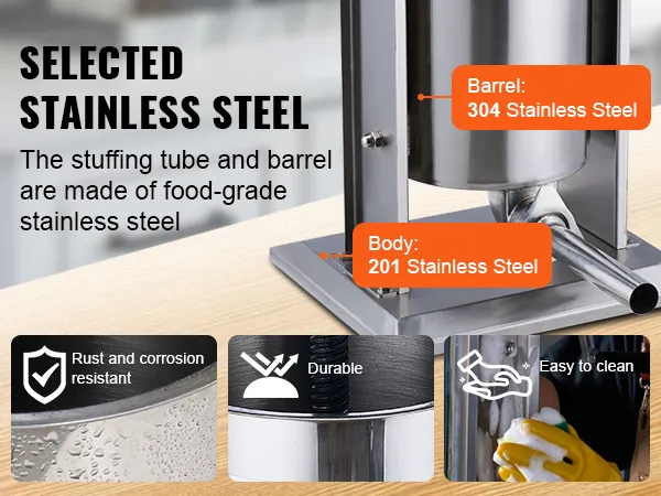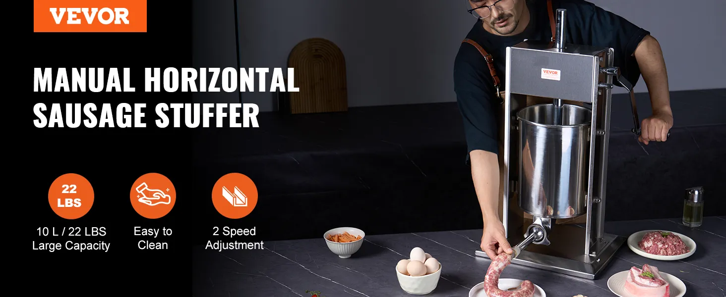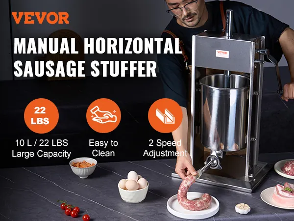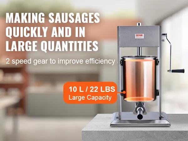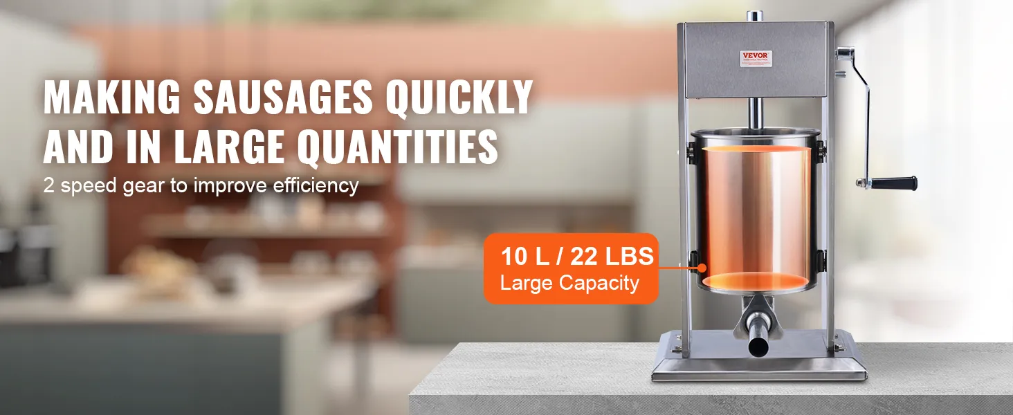 Large 10 L / 22 lbs Capacity: With a 10 L / 22 lbs large capacity barrel, it can handle large-scale sausage production, perfect for commercial applications such as supermarkets, restaurants, food processing factories, or home use.